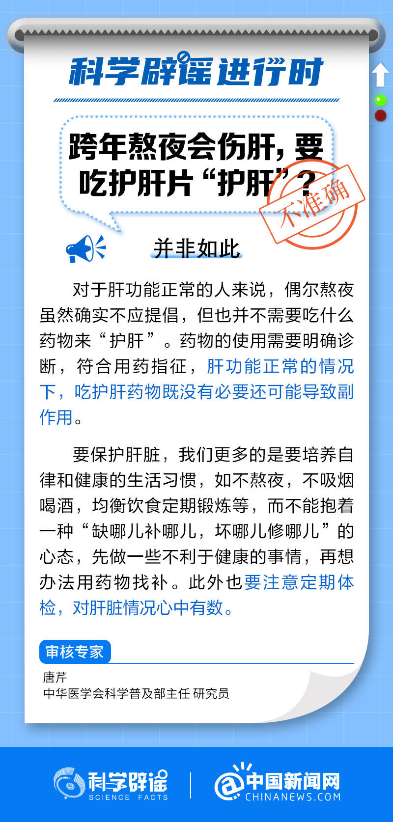 中新網(wǎng)1月30日電 對(duì)于肝功能正常的人來(lái)說(shuō),偶爾熬夜不需要吃什么藥物來(lái)“護(hù)肝”。藥物的使用需要明確診斷,符合用藥指征,肝功能正常的情況下,吃護(hù)肝藥物既沒(méi)有必要還可能導(dǎo)致副作用。要保護(hù)肝臟,我們更多的是要培養(yǎng)自律和健康的生活習(xí)慣,如不熬夜、不吸煙喝酒、均衡飲食、定期鍛煉等。(來(lái)源:@科學(xué)辟謠 中國(guó)新聞網(wǎng)微博 )