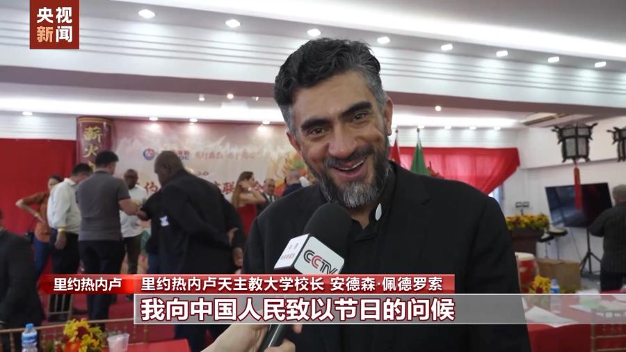 里約熱內(nèi)盧天主教大學(xué)校長 安德森·佩德羅索:我們與中國的合作已經(jīng)有十二年了,孔子學(xué)院就建在我們大學(xué)。我非常高興能參加今天的活動,我向中國人民致以節(jié)日的問候,希望我們今后加強(qiáng)合作。新春快樂,龍年大吉。