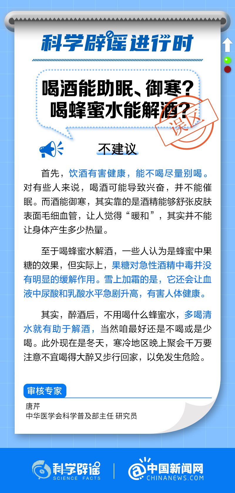 中新網(wǎng)2月13日電 飲酒有害健康,能不喝盡量別喝。對(duì)有些人來說,喝酒可能導(dǎo)致興奮,并不能催眠。而酒能御寒,靠的是酒精能夠舒張皮膚表面毛細(xì)血管,讓人覺得“暖和”,其實(shí)并不能讓身體產(chǎn)生多少熱量。至于喝蜂蜜水解酒,一些人認(rèn)為是蜂蜜中果糖的效果,但實(shí)際上,果糖對(duì)急性酒精中毒并沒有明顯的緩解作用。它還會(huì)讓血液中尿酸和乳酸水平急劇升高,有害人體健康。(來源:@科學(xué)辟謠 中國(guó)新聞網(wǎng)微博 )