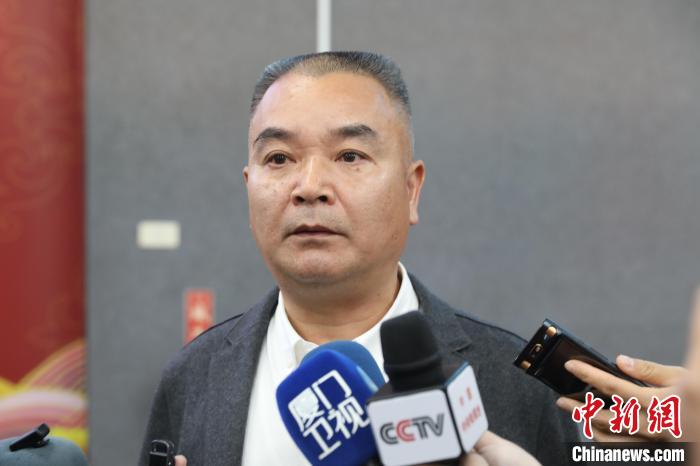 泉州晉江紅十字會(huì)高級(jí)顧問李朝暉在金門水頭碼頭接受中新社等媒體采訪。中新社記者 楊程晨 攝