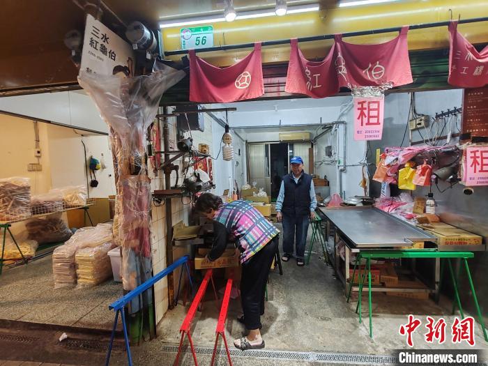位于臺(tái)北萬華區(qū)的三水紅龜伯是經(jīng)營近70年的米食老攤,年逾80歲的陳新桂、董敏卿夫婦每天清晨4點(diǎn)便會(huì)手工磨米炊粿。 中新社記者 楊程晨 攝