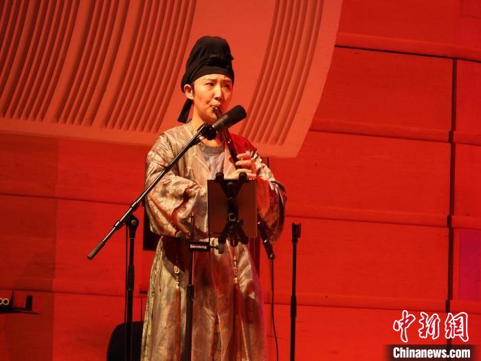 綾羅交織七千里,唯寄一夢(mèng)寓長(zhǎng)安。音樂(lè)會(huì)巧妙地為每一位樂(lè)手都設(shè)計(jì)了富有生命感的人物小傳——他們是敦厚善良的蒙古牧人,是耿直忠誠(chéng)的大唐武將,是堅(jiān)定隱忍的宮廷樂(lè)伎,還有潑辣開朗的康國(guó)公主......《絲路回響》《滿庭芳》《胡璇女》《菩薩蠻》《風(fēng)竹》《若相逢》《安詳》等15首精心編排的曲目通過(guò)笛子、琵琶、古箏、馬頭琴、二胡、鼓、手鼓、貝斯、鍵盤等樂(lè)器表演的相互碰撞,時(shí)而娓娓道來(lái),時(shí)而大氣磅礴、時(shí)而峰回路轉(zhuǎn),時(shí)而慷慨激昂,讓觀眾沉浸其中。特別是中國(guó)最古老的樂(lè)器之一塤的出場(chǎng),帶領(lǐng)觀眾穿越時(shí)空,盡情感受中華文化的源遠(yuǎn)流長(zhǎng)。同時(shí)音樂(lè)會(huì)精心打造的表演服裝和妝容設(shè)計(jì)既華美又夢(mèng)幻,讓觀眾身臨其境,感受中國(guó)音樂(lè)的獨(dú)特魅力,感受多元文化交流互鑒的激情洋溢。整場(chǎng)音樂(lè)會(huì)觀眾沉醉其中,掌聲一浪高過(guò)一浪。最后返場(chǎng)曲目新編澳大利亞傳統(tǒng)樂(lè)曲《剪羊毛》詼諧幽默,更是拉近了與現(xiàn)場(chǎng)觀眾的距離。