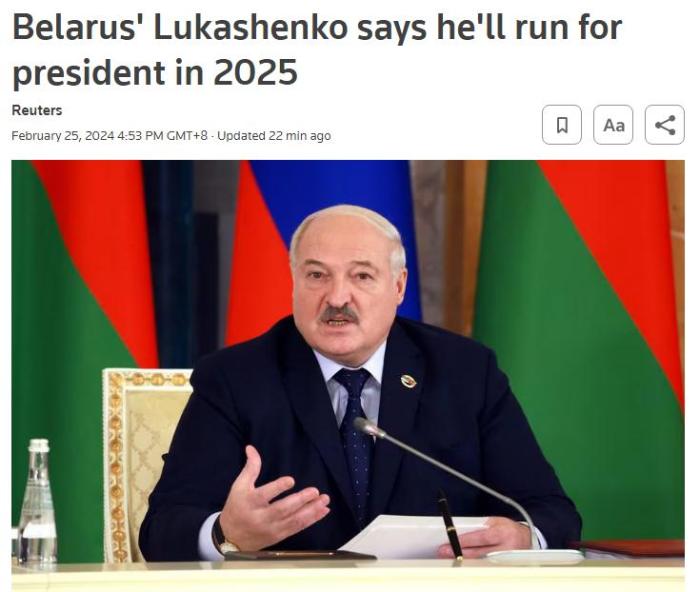 中新網2月25日電 據路透社援引白俄羅斯媒體25日報道,白俄羅斯總統(tǒng)盧卡申科表示,他計劃參加于2025年舉行的總統(tǒng)選舉。