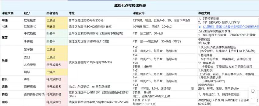 五花八門的副業(yè)她都嘗試過(guò),目前比較穩(wěn)定、收入占比最大的是去年11月開始做的夜校。那段時(shí)間,年輕人上夜校的話題火爆,她發(fā)現(xiàn)成都還沒(méi)有,于是第一個(gè)在成都建起夜校社群,以組團(tuán)的人數(shù)優(yōu)勢(shì)去找商家談低價(jià)課,類似于興趣班的拼多多,目前社區(qū)差不多有5000人。