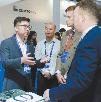2023年11月,2023金磚國(guó)家新工業(yè)革命展在福建廈門(mén)舉辦。圖為中外企業(yè)代表在現(xiàn)場(chǎng)交流。