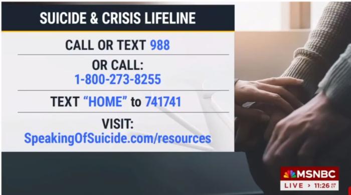 前面還挺正常,就是對事件的報道,畫面也在播報員和現(xiàn)場鏡頭之前互相切(順帶一提MSNBC的說辭也是“抗議哈以戰(zhàn)爭”),然后話鋒突然一轉:“如果你發(fā)現(xiàn)有人有心理健康風險,請及時撥打預防自殺熱線XXXXX……”