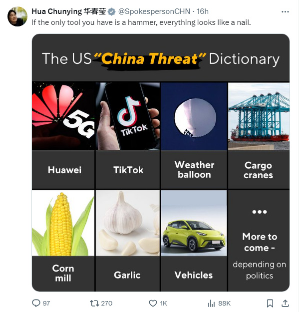 圖片來源:華春瑩社交媒體賬號截圖