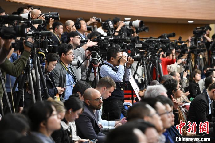 3月6日,十四屆全國人大二次會議在北京舉行記者會,國家發(fā)展和改革委員會主任鄭柵潔、財政部部長藍佛安、商務(wù)部部長王文濤、中國人民銀行行長潘功勝、中國證券監(jiān)督管理委員會主席吳清就發(fā)展改革、財政預(yù)算、商務(wù)、金融證券等相關(guān)問題回答中外記者提問。圖為中外記者在現(xiàn)場采訪。 中新社記者 何蓬磊 攝