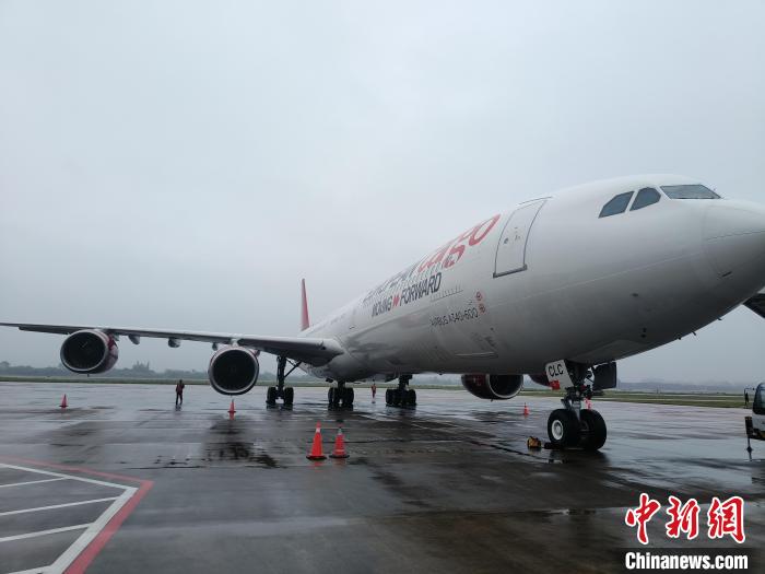 3月9日,由英國伯恩茅斯國際機場起飛的國際貨運航班抵達海口。(海口美蘭國際機場供圖)