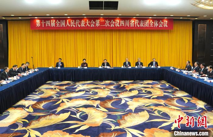 3月10日,出席十四屆全國人大二次會議的四川代表團(tuán)舉行開放團(tuán)組會議。中新社記者 崔楠 攝