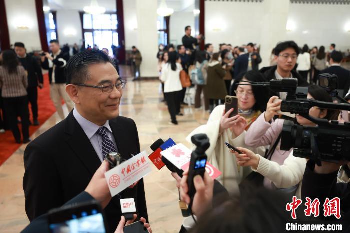 3月8日,十四屆全國人大二次會議在北京人民大會堂舉行第二次全體會議。圖為會后,港區(qū)全國人大代表楊德斌接受媒體采訪?!≈行律缬浾?蔣啟明 攝