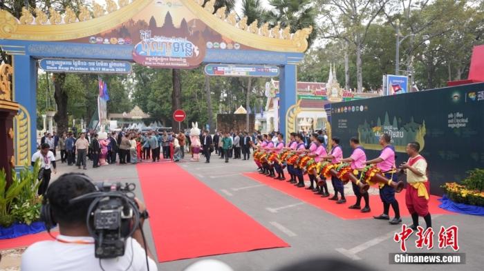 中新社暹粒3月16日電 (楊強 黎海月)當?shù)貢r間3月16日,柬埔寨第八屆河水節(jié)開幕式在世界文化遺產吳哥窟古跡所在地暹粒省舉行。出席當天活動的柬埔寨首相洪瑪奈表示,歡迎更多中國游客訪問柬埔寨。