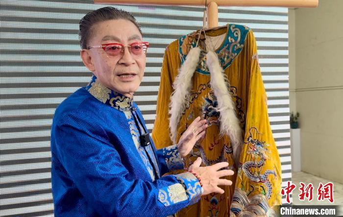 3月16日,在捐贈儀式上,六小齡童介紹父親和自己曾經穿過的蟒袍?! №椵?攝