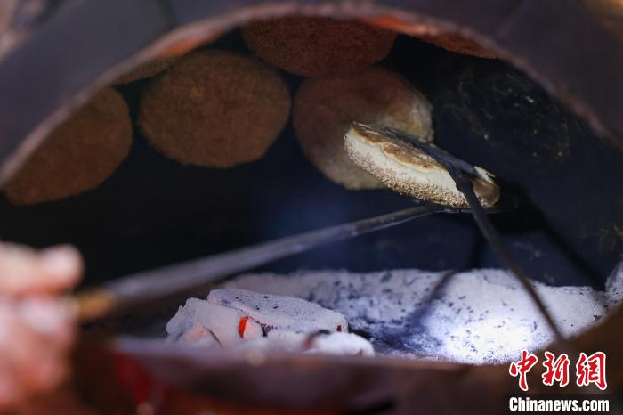 正在烤制的燒餅。(巨野縣融媒體中心 供圖)