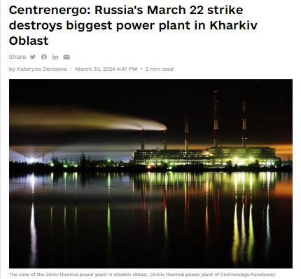 中新網(wǎng)3月31日電 據(jù)《基輔獨(dú)立報(bào)》當(dāng)?shù)貢r(shí)間30日援引烏克蘭能源公司消息,烏東部最大發(fā)電廠、位于哈爾科夫州的茲米耶夫火力發(fā)電廠已在俄軍22日的導(dǎo)彈襲擊中被摧毀。