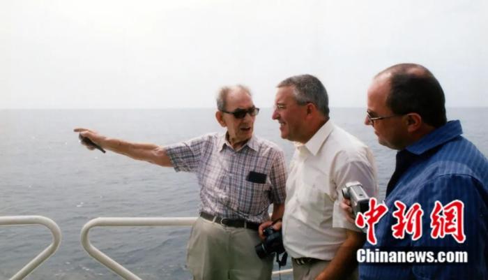 佐敦在沉船海域向兩個(gè)兒子講敘當(dāng)年獲救的經(jīng)過(guò)。洪曉敏供圖