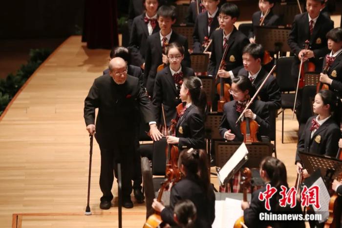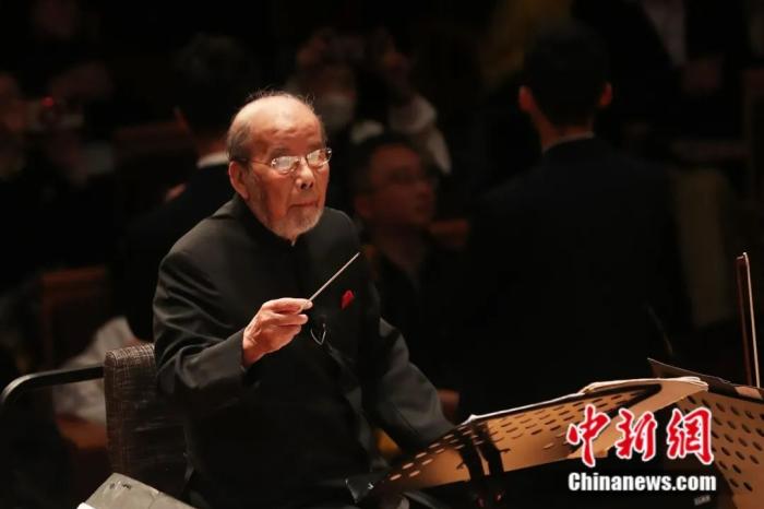 音樂會的尾聲,99歲高齡的中國著名指揮家曹鵬在長達一分半的掌聲中登上指揮臺。