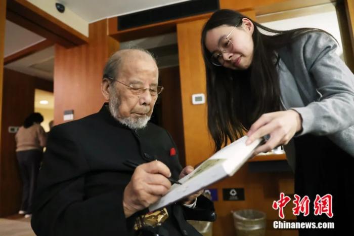 巨大的化妝鏡前,曹老手執(zhí)拐杖,正安靜地坐在輪椅上沉思,化妝臺上放著好幾束鮮花。他向中新社記者感慨:“這些孩子們真不簡單!”“99歲再次和這些孩子們合作,對我的一生來說都是很難忘的,希望我在100歲時還能和他們一起開音樂會?!?/p>
