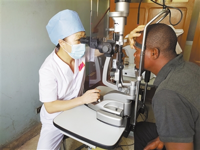 中國專家正在為貝寧當(dāng)?shù)鼗颊哌M行眼科檢查。