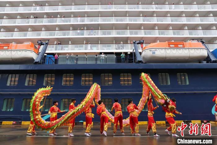 歡騰的舞龍舞獅歡迎“邁希夫”號(hào)郵輪到訪上海吳淞口國(guó)際郵輪港。蔣小威攝