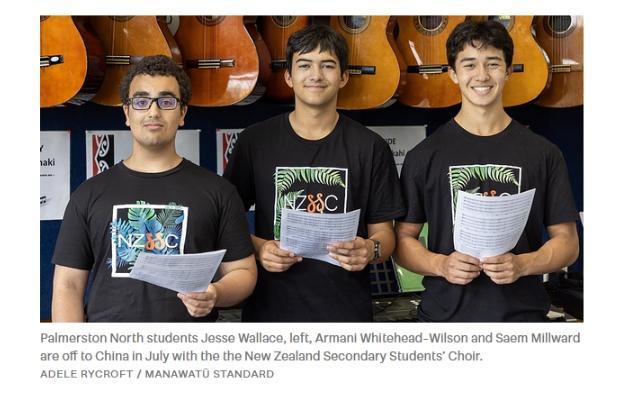 圖為將來中國參加合唱節(jié)的3名新西蘭學生。圖片來源于新西蘭Stuff網(wǎng)站截圖