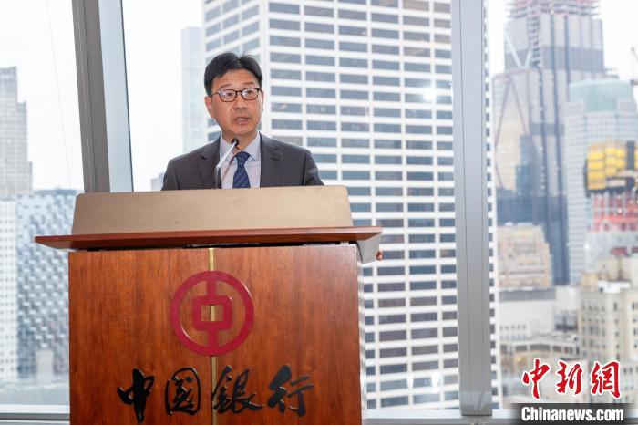 當?shù)貢r間4月10日,以“經(jīng)濟合作與文化傳承的雅致之約”為主題的“甘肅雅集”推介活動在美國紐約曼哈頓舉行。圖為甘肅省委常委、副省長張錦剛致辭。 中新社記者 廖攀 攝