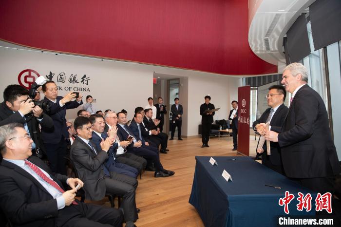 當?shù)貢r間4月10日,以“經(jīng)濟合作與文化傳承的雅致之約”為主題的“甘肅雅集”推介活動在美國紐約曼哈頓舉行。圖為甘肅省人民對外友好協(xié)會同美中綠色基金會簽署了諒解備忘錄?! ≈行律缬浾?廖攀 攝
