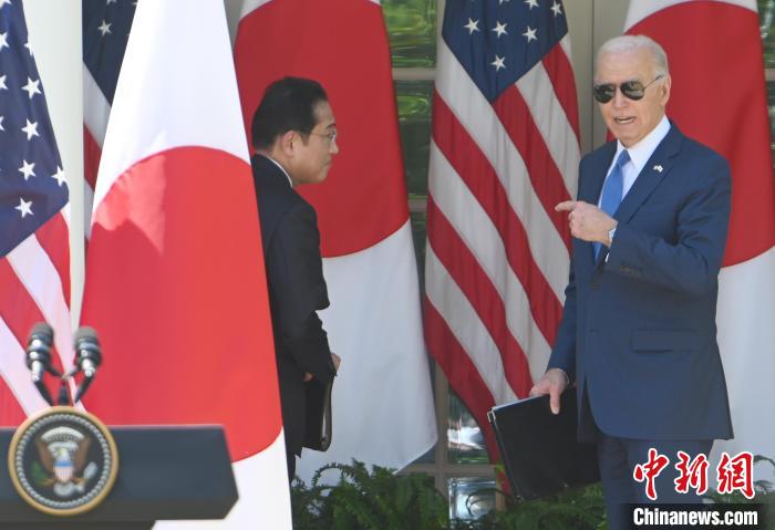 當(dāng)?shù)貢r間4月10日,美國總統(tǒng)拜登與來美國事訪問的日本首相岸田文雄在白宮舉行會晤。圖為雙方出席聯(lián)合記者會。中新社記者 陳孟統(tǒng) 攝