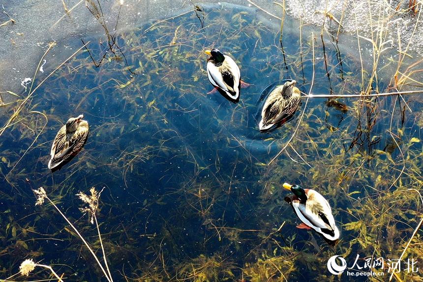人民網(wǎng)石家莊1月6日電 隆冬時節(jié),走進河北省文安縣趙王新河濕地公園,水面碧波蕩漾,清澈的河水吸引了上千只野鴨在此繁殖棲息。它們時而翩翩起舞、時而將頭潛進水中覓食,嬉戲玩耍,很是怡然自得。
