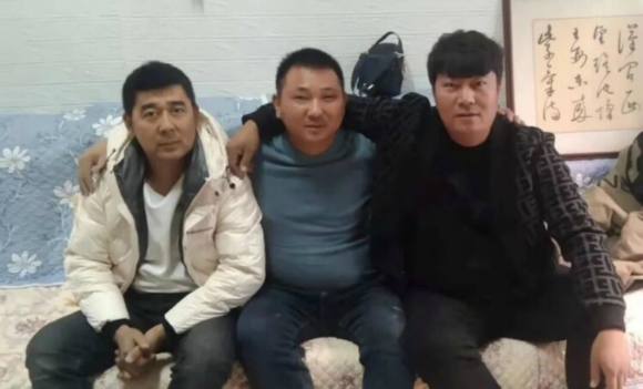 曼蘇爾·帕塔爾、買買提·努爾東和趙序磊(中)在一起的合影。沛宣供圖