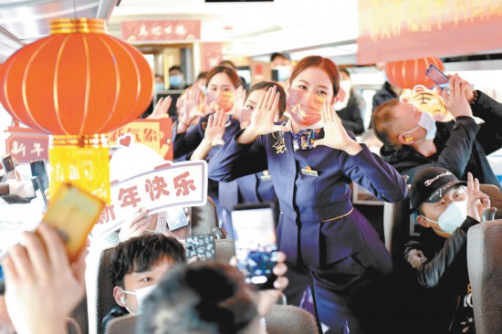 1月16日,合肥客運段工作人員在G7162次列車上為旅客表演節(jié)目,讓旅途充滿溫情。2022年春運從1月17日開始,2月25日結(jié)束,共計40天。 新華社記者 黃博涵攝
