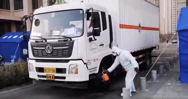 為防疫車輛進行消殺。天津市紀委監(jiān)委供圖