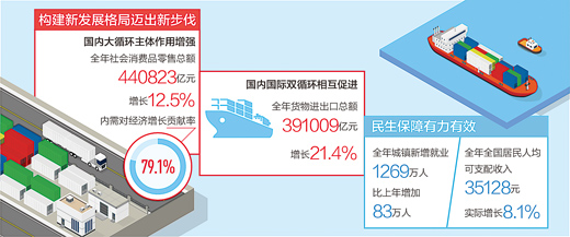 “過去一年,經(jīng)過全國上下共同努力,我國經(jīng)濟發(fā)展和疫情防控雙雙保持全球領(lǐng)先地位,國民經(jīng)濟總體運行在合理區(qū)間,全年發(fā)展的主要目標任務(wù)已經(jīng)完成,構(gòu)建新發(fā)展格局邁出新步伐,高質(zhì)量發(fā)展取得新成效,‘十四五’實現(xiàn)了良好開局?!?1月17日,在國新辦新聞發(fā)布會上,國家統(tǒng)計局局長寧吉喆說。