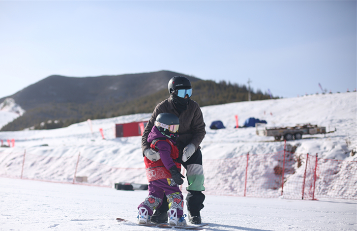 “一開始只是帶著孩子來雪場(chǎng)感受一下氛圍,當(dāng)時(shí)的萱萱還只會(huì)爬,我給她裹上厚厚的羽絨服,試著把她放在雪地里爬,發(fā)現(xiàn)她一點(diǎn)都不害怕,反而玩得很開心。”金彬彬回憶道,第一次抱著萱萱滑雪時(shí),他把女兒摟在懷里,帶她感受了一把從山上往下滑的體驗(yàn),小家伙全程并沒有害怕不安,反而表現(xiàn)得很興奮。