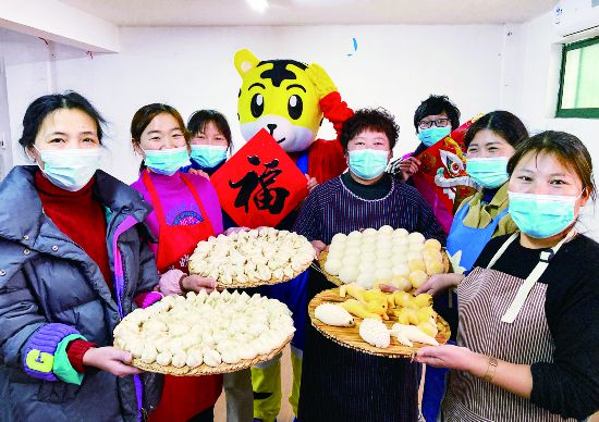 1月19日,在金華婺城區(qū)城西街道河盤橋社區(qū)活動室,部分留金過春節(jié)的外來務(wù)工人員一起做花饃、蒸饅頭、包餃子,提前感受家鄉(xiāng)過年的喜慶氣氛。河南開封籍的于紅霞說,今年她響應(yīng)政府號召留金過春節(jié),丈夫平時開大貨車,常年奔波在外,非常辛苦,趁著春節(jié)可以在家里好好休息,她準(zhǔn)備了一些家鄉(xiāng)特色的菜肴和面食。(時寬兵)