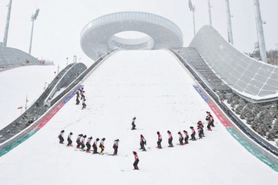 ——看文脈滄桑。雪中的現(xiàn)代化冬奧場(chǎng)館向世界講述著中國(guó)故事。首鋼滑雪大跳臺(tái)的曲線好似敦煌“飛天”的飄帶;國(guó)家高山滑雪中心的7條賽道如飛燕展翅,承載“吉祥”之意;國(guó)家雪車雪橇中心如巨龍臥于山下;國(guó)家跳臺(tái)滑雪中心則如同古代的玉如意擺件。在漫天飛雪中,我們看到了閃耀世界的中華文明。春雪之美,在樂享盛會(huì)。