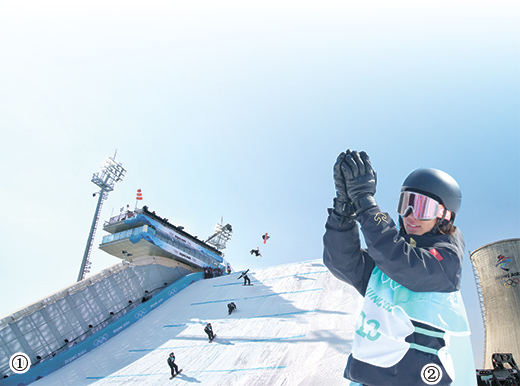 圖①:2月15日,單板滑雪男子大跳臺(tái)決賽,蘇翊鳴第二跳確定優(yōu)勢。