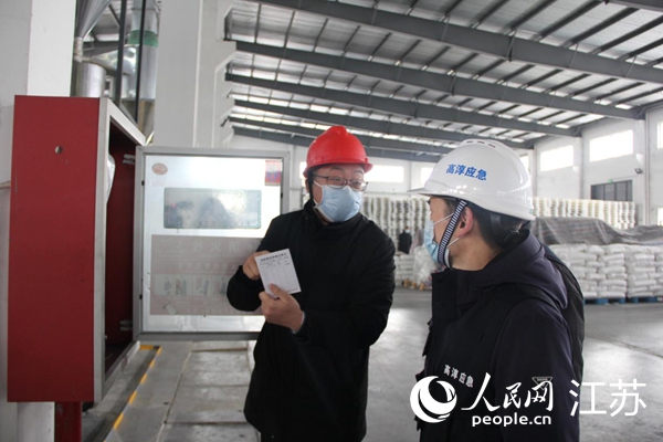 高淳區(qū)應(yīng)急管理局檢查指導(dǎo)組實地查看企業(yè)安全生產(chǎn)運行情況。索垚攝
