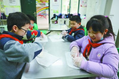 昨天,小學(xué)生在鼓樓區(qū)南財大附小參加小廚神社團(tuán)活動。 南京日報/紫金山新聞記者 徐琦 攝