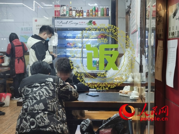 22日晚間,記者在蘇州工業(yè)園區(qū)星波街一家飯店發(fā)現(xiàn),多位消費(fèi)者進(jìn)進(jìn)出出,三四個(gè)消費(fèi)者正坐在店內(nèi)等餐,其中兩人未戴口罩。而就在店外的墻上還張貼著《蘇州工業(yè)園區(qū)關(guān)于餐飲場(chǎng)所暫停堂食的通告》,該通告稱,蘇州工業(yè)園區(qū)全域被列為新冠肺炎疫情防范區(qū),部分區(qū)域被列為封控區(qū)、管控區(qū),正處于“內(nèi)防擴(kuò)散、外防外溢”的關(guān)鍵時(shí)刻,自2月17日開始所有飯店、賓館、早餐店、面店、飲品店等餐飲場(chǎng)所暫停堂食,僅可提供外賣和送餐服務(wù)。這家飯店的經(jīng)營(yíng)者表示,按要求不可以堂食,但可以坐下來(lái)等餐。