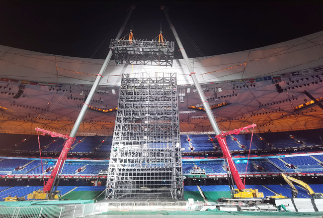 矗立在“鳥巢”東側(cè)跑道中心區(qū)域的巨幅屏幕被稱為“冰瀑”,由鋼結(jié)構(gòu)和LED顯示屏組成,在開幕式上呈現(xiàn)了“黃河之水天上來(lái)”的震撼效果。拆除大屏幕主體鋼結(jié)構(gòu)成為“鳥巢”轉(zhuǎn)場(chǎng)的關(guān)鍵。