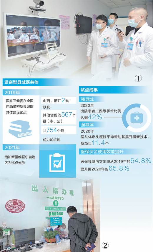 近日,國家衛(wèi)健委印發(fā)《醫(yī)療機(jī)構(gòu)設(shè)置規(guī)劃指導(dǎo)原則(2021—2025年)》,要求按照縣鄉(xiāng)一體化、鄉(xiāng)村一體化原則積極發(fā)展緊密型縣域醫(yī)共體。2019年,國家衛(wèi)健委在全國啟動(dòng)緊密型縣域醫(yī)共體建設(shè)試點(diǎn)。目前全國已有535個(gè)縣建成縣、鄉(xiāng)、村三級(jí)聯(lián)動(dòng)的緊密型縣域醫(yī)共體,試點(diǎn)縣醫(yī)療服務(wù)效能提高,縣域內(nèi)就診率超90%。