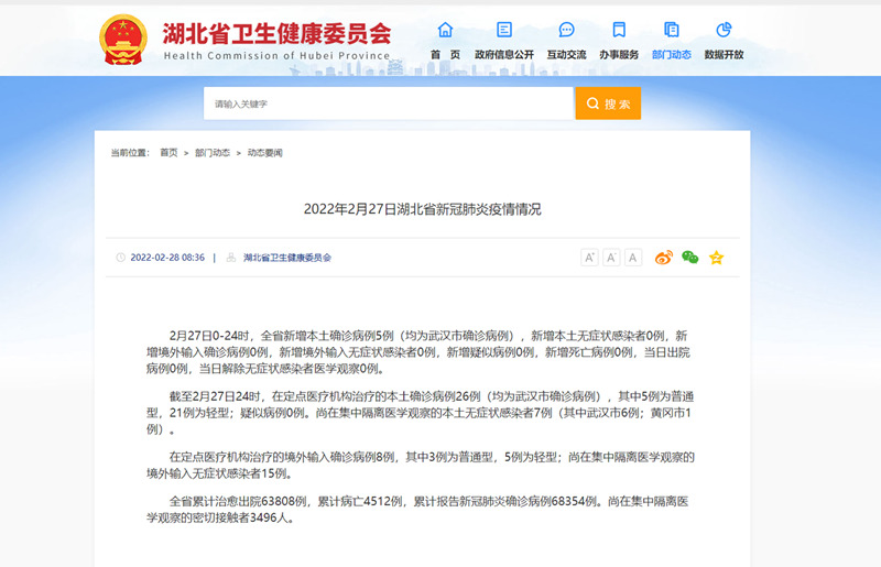 湖北省衛(wèi)生健康委員會(huì)網(wǎng)頁截圖。