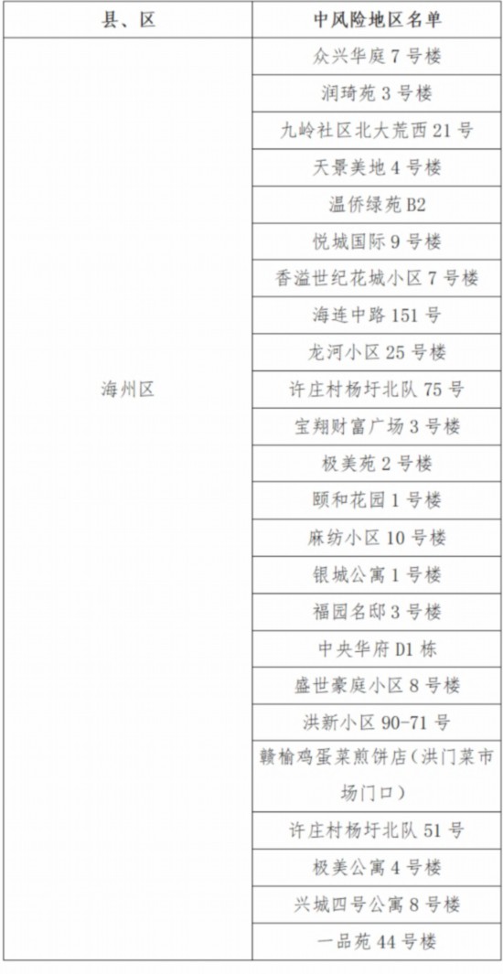 連云港市24個(gè)中風(fēng)險(xiǎn)地區(qū)詳細(xì)名單