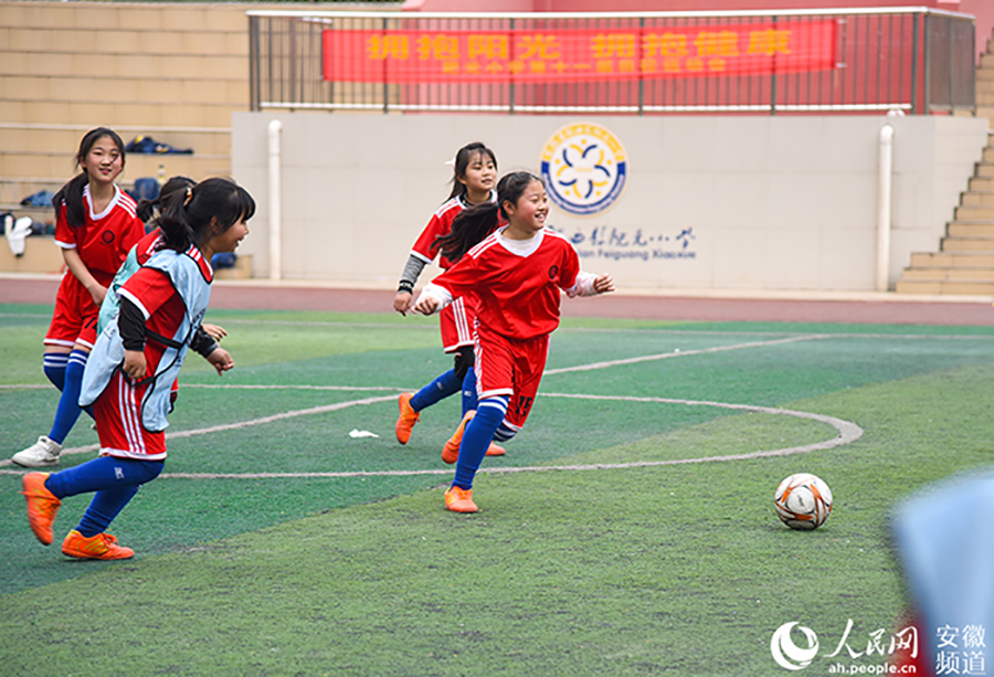 “小足球女將”們在球場上快樂奔跑。人民網(wǎng) 李希蒙攝
