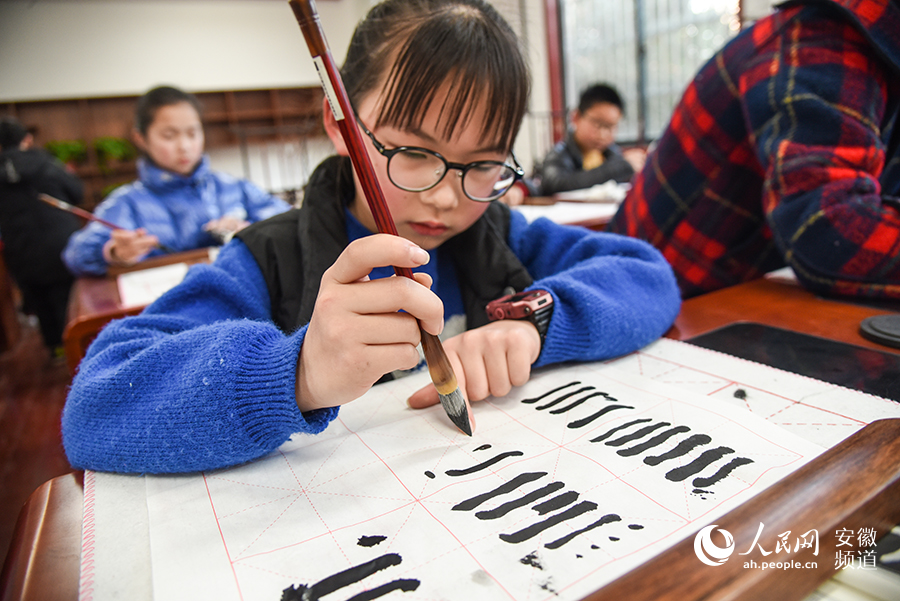 “小小書法家”正在認(rèn)真練習(xí)書寫。人民網(wǎng) 李希蒙攝
