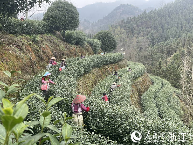 采茶工采摘開(kāi)化龍頂頭茶。人民網(wǎng) 王蕭蕭攝