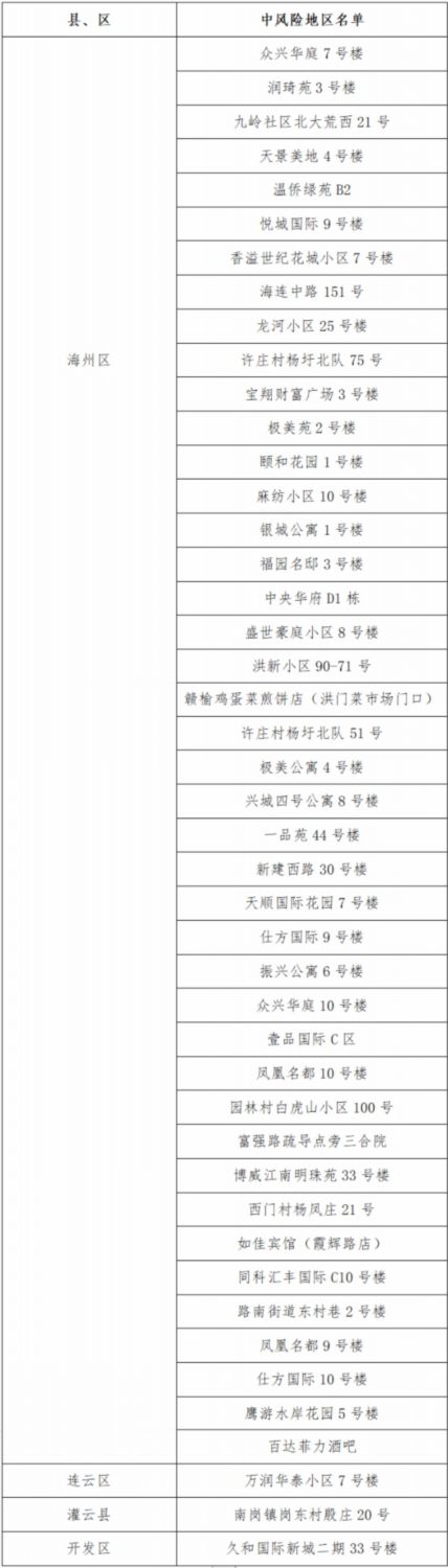 連云港市45個中風險地區(qū)詳細名單(2022年3月10日)