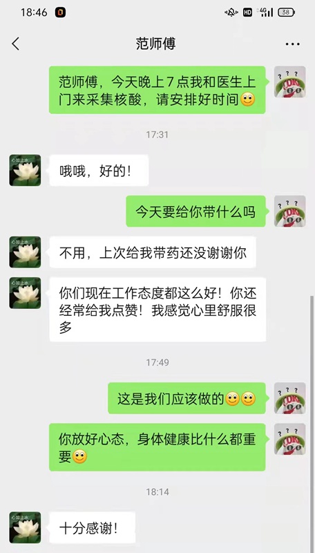 為守好防疫的最小單元,連日來,洪濤和其他社區(qū)工作人員主動站在疫情防控第一線,為社區(qū)居民筑起一道堅固的安全防線。據(jù)了解,在結(jié)網(wǎng)社區(qū),為了讓居家觀察人員安心在家度過14天觀察期,社區(qū)工作人員化身“心理疏導(dǎo)員”,經(jīng)常在微信上和他們閑話家常,幫助其調(diào)節(jié)情緒。同時,洪濤還積極發(fā)動黨員和志愿者成立了一支“親情網(wǎng)代購”服務(wù)隊,大家化身“快遞員”“外賣員”“跑腿員”,為居家隔離戶提供購買、配送服務(wù)。