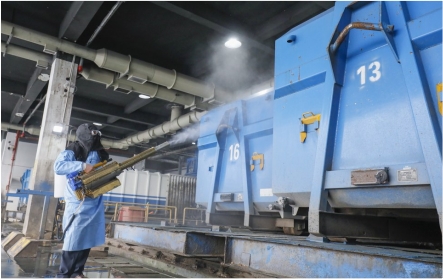 東臺環(huán)衛(wèi)處對垃圾中轉(zhuǎn)站、環(huán)衛(wèi)車輛、果皮箱、公共廁所等進行消殺大掃除,筑牢公共環(huán)境安全屏障。東臺市委宣傳部供圖